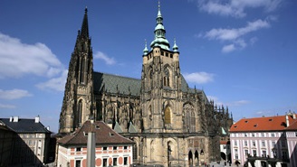 Tuto monumentální katedrálu najdete hned vedle Pražského hradu. V češtině se jí říká Katedrála svatého Víta. Je to římskokatolická katedrála a sídlo pražského arcibiskupa. Stavba začala kolem roku 930, současnou podobu získala v roce 1344. Za katedrálou stojí architekti Petr Parléř a Matyáš z Arrasu. Je skvělou ukázkou gotické architektury a je největším a nejvýznamnějším kostelem v České republice. Najdete v něm hrobky mnoha českých králů a císařů Svaté říše římské.